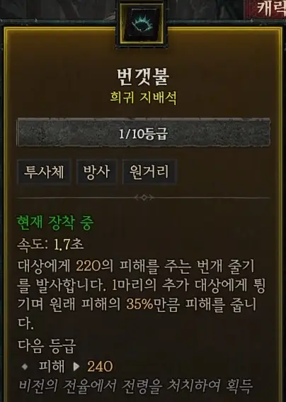 적중 가능한 적의 수가 최대 10마리까지 증가한다. (10등급 업그레이드 시)