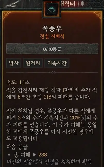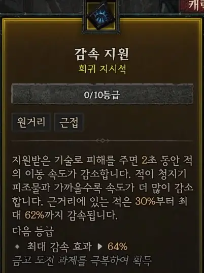 회전칼날 스킬이 딜레이가 있는 스킬이기 때문에 적의 이동 속도 감소 효과가 빌드에 도움이 된다.